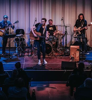 setzt auf kreative Talente, die es auf die Bühne zieht und die zu einem lockeren, unterhaltsamen Abend beitragen wollen. Begleitet und unterstützt werden sie von der KUBAA Hausband unter Leitung von Matthias Kehrle. Flex Flechsler moderiert und im Saal herrscht lockere Studio-Atmosphäre. „Ihr wollt raus aus der „Probenraum-Komfort-Zone“… Ihr wollt zeigen, was Ihr auf Eurem Instrument so drauf habt… Ihr könnt tanzen, Sketsche aufführen, Witze erzählen oder Goethe rezitieren… Ihr wollt Euren Lieblingssong mal selbst mit Band performen… Ihr wollt Euer Licht nicht weiter unterm Scheffel stehen lassen… Ihr gehört schon lange auf eine Bühne…“ so lädt der Flyer zum Mitmachen ein. Anmelden kann sich jede und jeder mit einem kleinen Video unter kubaa@flex-enterprises.de. Das Ganze gibt es sechs Mal im Jahr.